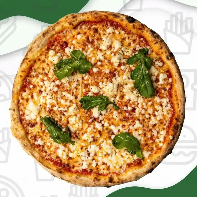 Tomato sauce, mozzarella cheese, arugula, parmesan cheese, olive oil